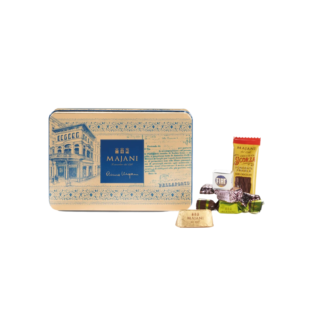 Product: Sample the best of Majani with this tin of goodies. Crumbly Scorza, dark and milk chocolates with dark and milk cream fillings and four layer Cremini. Choices are hard leaving something delicious behind is worse: so save yourself and have a little bit of everything!Â