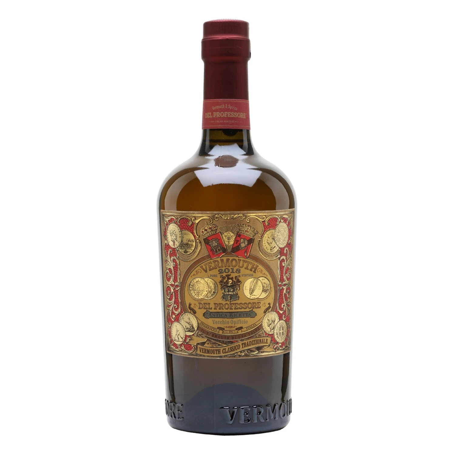The luxurious amber colour of the Vermouth del Professore Classico is reminiscent of Marsala and the aromas on the nose fluctuate between hints of the liquorice and bitterness in absinthe, dried straw, mahogany and tea infusions. The medicinal quality in the flavour of the alcohol and its continual underlying bitterness manages to keep in balance with the refreshing flavours of herbs and spices, and is complemented by sweeter notes of ginger and citrus peel, making the Vermouth both slightly bitter and slightly sweet.
